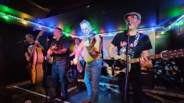 Three members of 'The Ugly Dog Skiffle Combo' made up of banjo, double bass and guitar playing anything we dare in a hillbilly style...