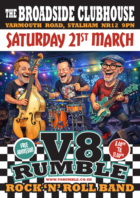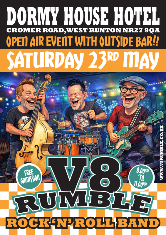 V8 Rumble Rockabilly Band hail from Norfolk, UK and feature the classic 3 piece rockabilly line-up of Slap Bass, Drums and Guitar. The band formed in the Norfolk town of North Walsham in 2006 and now gigs regularly around Norfolk events, pubs and clubs playing classic rock ānā roll and rockabilly songs & instrumentals, cover versions of more modern material played rockabilly style.